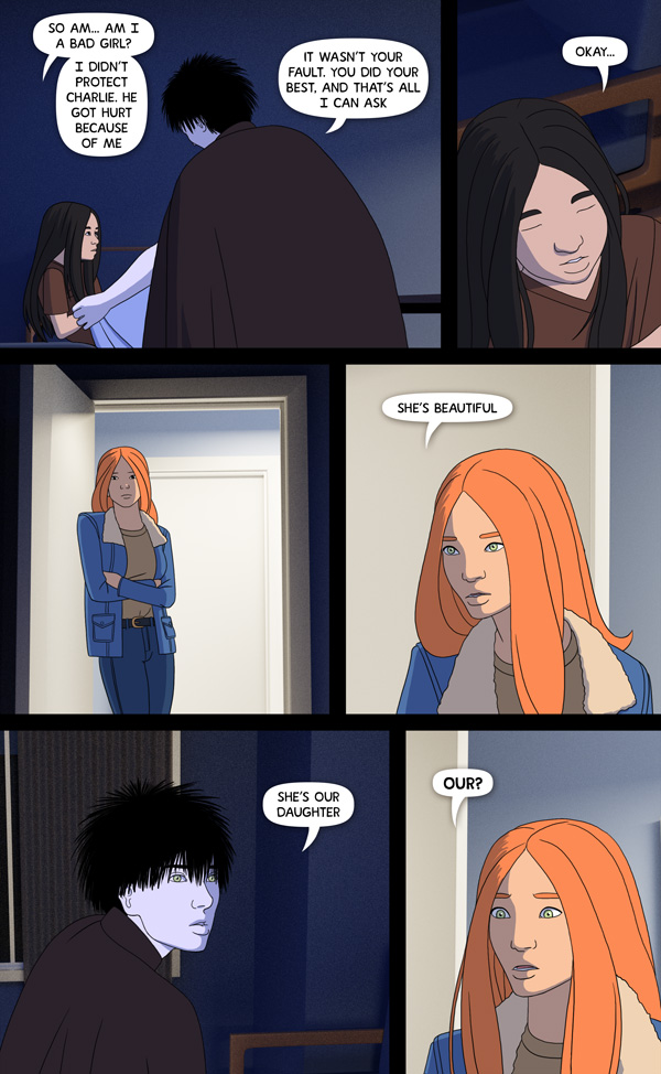 Up here Beautiful mood in panel three- posture, expression, and background.