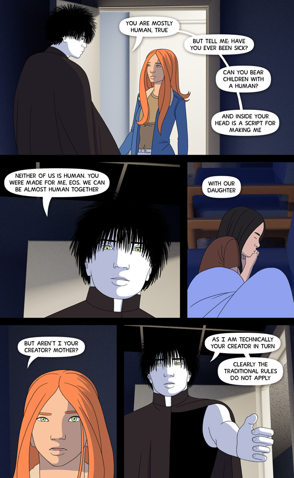 Phlatus Seriously, now we find out if the new model Memnon is really a good guy or not when Eos says, "You're my son to me and what you're doing is creeping your mother out, young demi-god, so knock that shit off NOW!" He IS capable of universe destroying tantrums, after all.