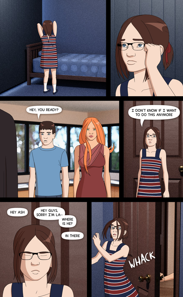 Yaya now Panel 1: Ouch. I think Charlie's head, feet, and dress are on backwards. There's no way I could get my arms to do that - not even when I was 11. . .. makes my shoulders hurt just thinking about trying. Whatever; great story. :-)0