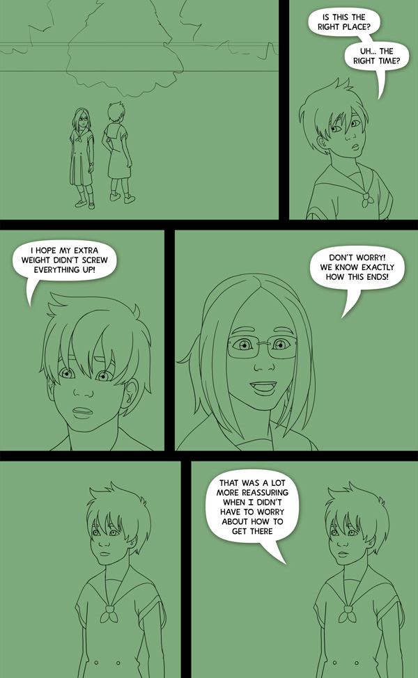 Tober Hey guys, sorry for the confusion. I just changed to a green background because I thought the blue background was clashing with everything else. That blue is just the 'blank canvas' colour I was using because my speech bubbles have no lines, so they wouldn't show up if I used white.