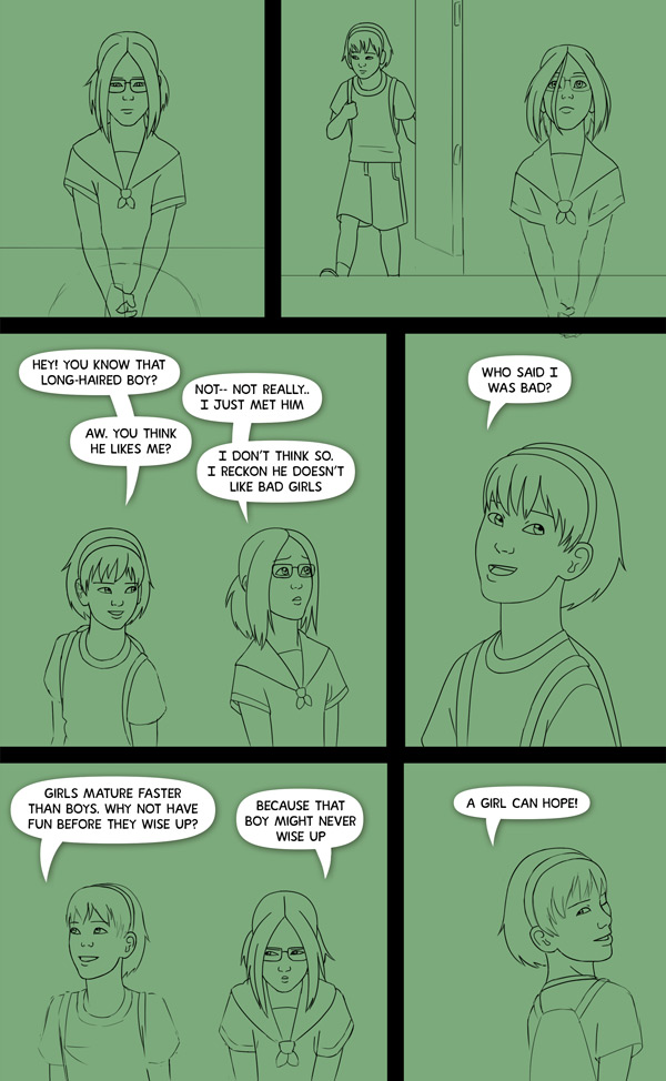 Up Here Love that question, “Do you know that long-haired boy?” !!! Although technically, it’s probably the first time they’ve “met.” Wonderful drawing as well!