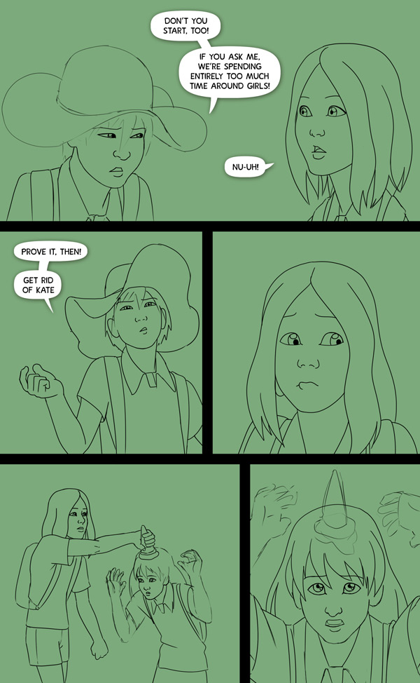 caribouchat Aww, poor Kate... Johnny is really being a dick here, but I love past Charlie in the third panel... and the fourth... looks like he doesn't totally agree with this, which is nice ;) btw, I just read over the whole chapter till this page and it's so great, I love those children interactions. Ash is still my favourite ^^